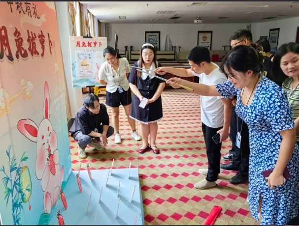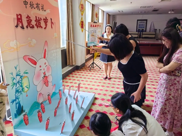 2023年这个中秋,一场妙趣横生却又***挑战的活动精彩上线:玉兔拔萝卜。"钓萝卜"讲究的是足够的耐心和微妙的技巧,手持一根吊杆,屏气定神,将外界的噪杂都抛之脑后,随着一个个萝卜被帅气钓起来,现场欢呼声此起彼伏,好不热闹,这个中秋也太快乐了吧~