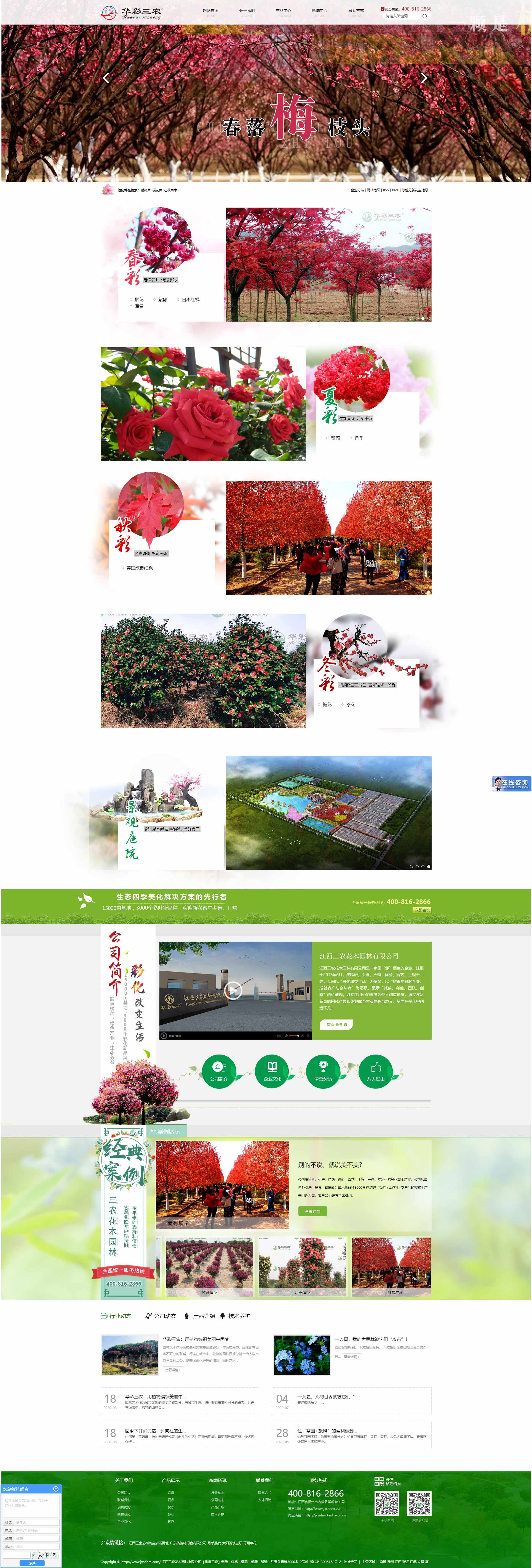江西三农花木园林有限公司是一家因“彩”而生的企业,成立于2013年6月,集科研、引进、产销、体验、园艺、工程于一体.三农集团立足生态彩化苗木产业,以“华彩三农”为核心品牌,从国内外引进、搜集、改良彩叶苗木新品种3000余种,现有苗木生产示范基地15000余亩,客户30万遍布全国各地。公司积极响应“打赢扶贫攻坚战、推进乡村振兴战略”政策号召,积极推进一三产业融合发展,未来5年通过“***+合作社+联合体(农户)”的模式种植苗木基地10万亩,实现产值超100亿元,着力带动地区精准扶贫,力争全国彩化行业***,共建美丽中国。
